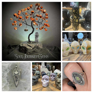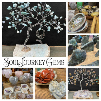 We're a husband-and-wife small business sharing our love for crystals, minerals, including handmade wire crystal Mojo Trees, crystal jewelry and more! Each piece is thoughtfully chosen or crafted to inspire connection, balance, and beauty. From shimmering spheres and carved creations to one-of-a-kind wire twisted Mojo Trees, Soul Journey Gems celebrates the magic and energy of the natural world.